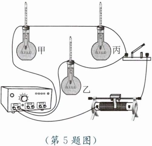 (1) 他只连接一次电路就完成了实验探究。他采取的方法是用电阻丝(其中$R_甲>R_乙$,$R_乙 = R_丙$)给三个烧瓶中的煤油加热,要求煤油的质量