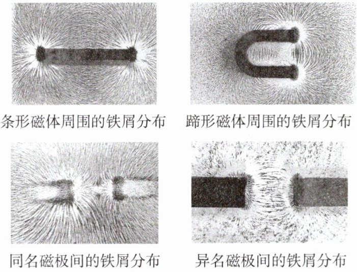条形磁体周围的铁屑分布 蹄形磁体周围的铁屑分布