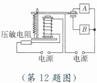 12. 小明发明了一种自动报警器,其电路图如图所示。当有人踩在压敏电阻上时,压敏电阻阻值减小,电磁铁磁性