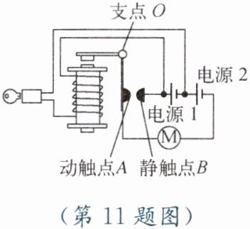 11. 如图所示为某款燃油汽车启动装置的电路简图。汽车启动时,需要将钥匙插入仪表板上的钥匙孔并旋转,旋转钥匙相当于闭合开关,电源