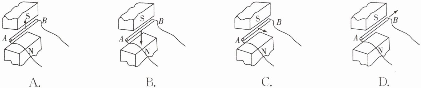 D.磁体的S极在上时,使导线$ab$向左运动;磁体的N极在上时,使导线$ab$向右运动。观察到两次灵敏电流计指针偏转方向相同,说明感应电流的方向与磁场方向无关