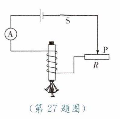 答案:27. (1)移动滑动变阻器的滑片 电磁铁吸引铁钉的多少
