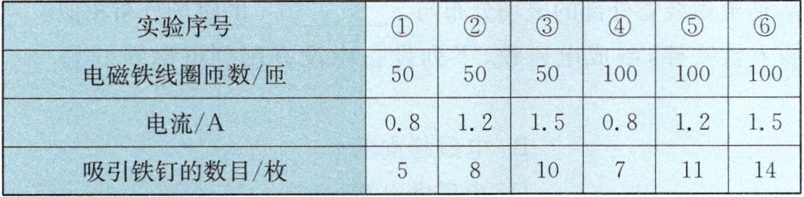 ② 比较实验中的①和④(或②和⑤,或③和⑥),可得出的结论是:当电磁铁线圈中的电流一定时,