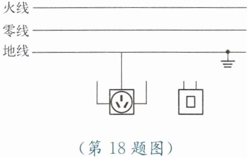 18. 如图所示是厨房里用开关控制的三孔插座,用笔画线代替导线将其接入电路中。