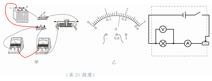 20. 在“测定灯泡的功率”实验中,小明所在的实验小组要测量一个额定电压为 3.8 V 的灯泡的功率。