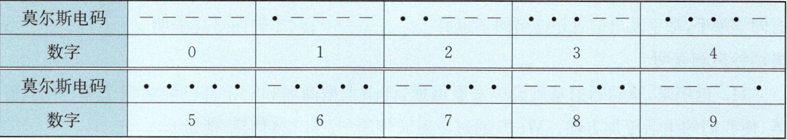 3. 某日,我国“海翼号”水下滑翔机在太平洋深潜,08:12:02(时:分:秒),水面上轮船的声呐接收到正下方“海翼号”发出的声信号。发出信号的时刻用莫尔斯电码表示,其代码为“— — — — — — — • • — — — • • • — — — — •”。下表所示为莫尔斯电码及对应的数字,已知海水中声速是 1 500 m/s,“海翼号”发出信号时距离轮船