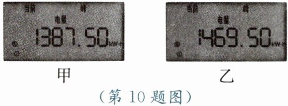 10. 如图甲、乙所示分别是小明家某月月初和月末电能表的示数。