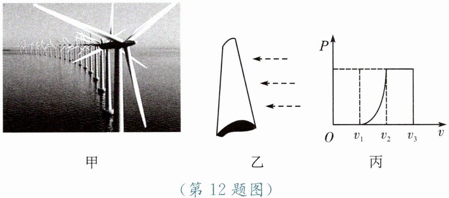 12. 如图甲所示是某地风力发电的外景。风力发电机组主要由风机叶片和发电机组成。