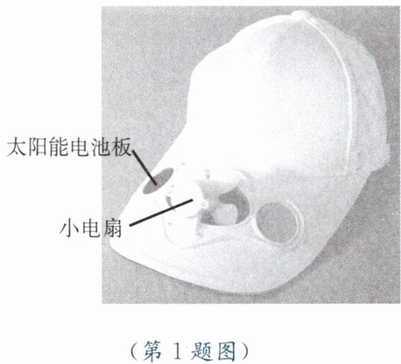 1. 如图所示是市面上出售的一种装有太阳能电扇的帽子。在太阳光的照射下,小电扇快速转动,能给炎热的夏季带来一丝凉意。该装置的能量转化情况是 (
