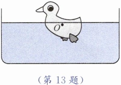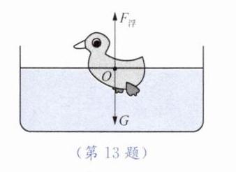 13. 如图所示,请画出漂浮在水面上的玩具鸭的受力示意图。