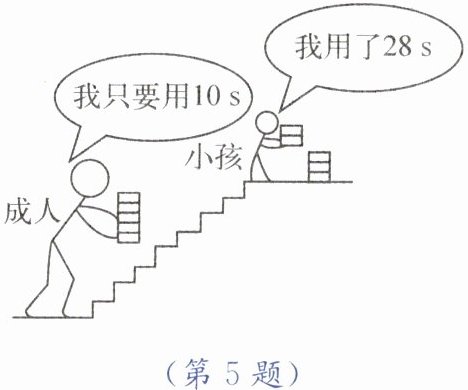 5. 如图所示,成人和小孩分别将$5$块相同的砖从一楼搬到二楼。在这个过程中,下列说法中正确的是(