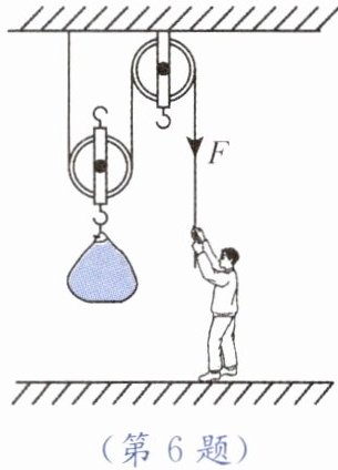 6. 如图所示,在$200\ N$的拉力$F$作用下,用滑轮组将重为$300\ N$的货物匀速提升,在$20\ s$内货物竖直上升了$2\ m$。若不计绳重及滑轮上的摩擦,下列说法中正确的是(