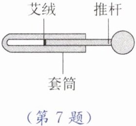 7. 如图所示是我国古代发明的取火器模型图,把推杆迅速推入牛角套筒时,套筒内空气被压缩,推杆前端的艾绒立刻燃烧起来,此过程中机械能转化为