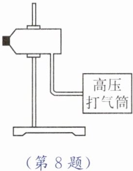 8. 小明用高压打气筒往封闭空塑料瓶内打入空气,如图所示。随着瓶内气压增加,气体内能增大,这是通过