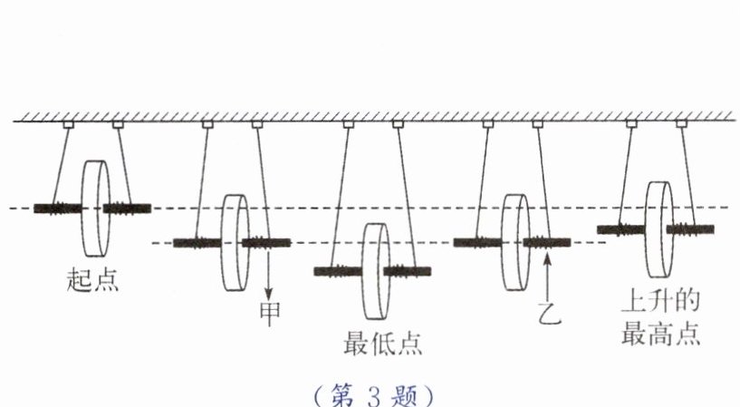 3. 如图所示是滚摆完成一次下降和上升的示意图。该过程中,滚摆分别处于甲、乙位置时,(
