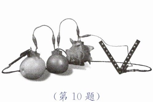 10. 如图所示,酸甜多汁的水果提供的电能点亮了发光二极管,其中水果相当于电路中的