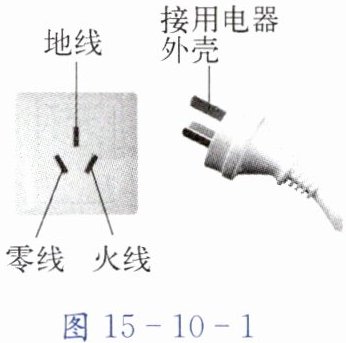 15-10-1 所示,插座中有一个孔是用来接地的。如果这个孔没有接地,将可能导致(