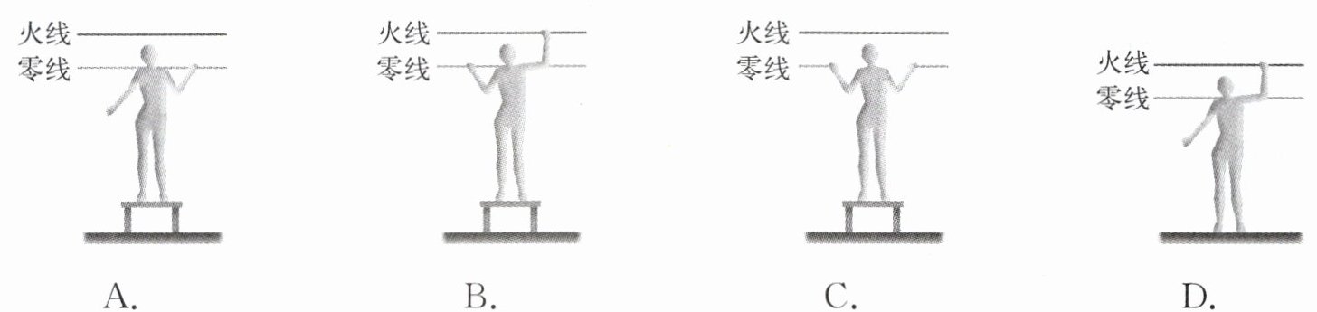 椅上,D 为人站在地面上),其中一定不会触电的是(