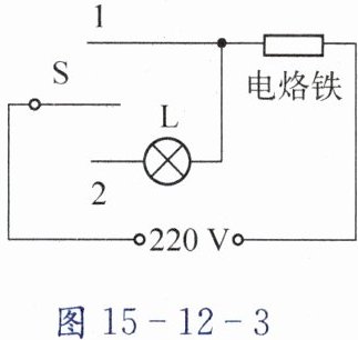 S拨向1时,电烙铁单独接入,为工作状态;拨向2时,灯与电烙铁串联,为保温状态。
