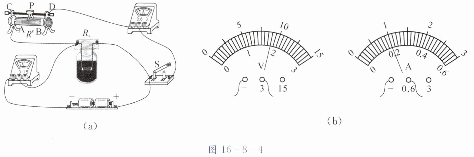 ③ 闭合开关 S,移动滑片 P,测得多组数据如右表所示。实验②的数据如图 16-8-4(b)所示,电压表示数为