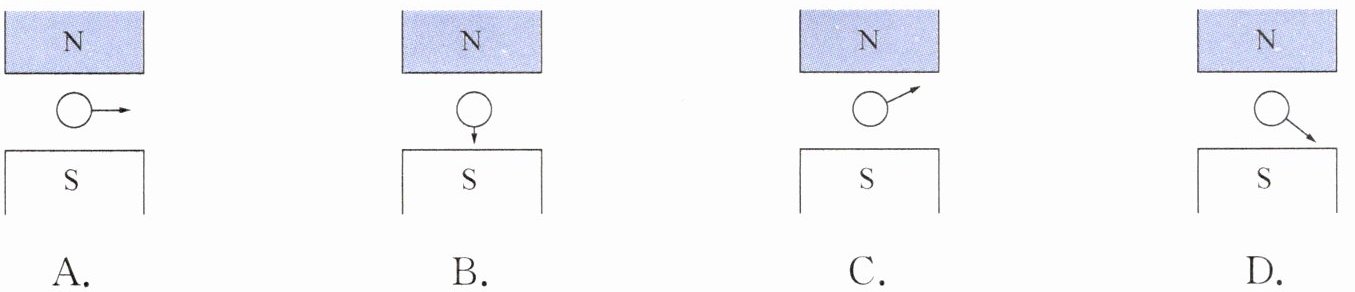 根据电磁感应原理,闭合电路的一部分导体在磁场中做切割磁感线运动时,导体中会产生感应电流。图中磁场方向为由N极指向S极(竖直向下)。