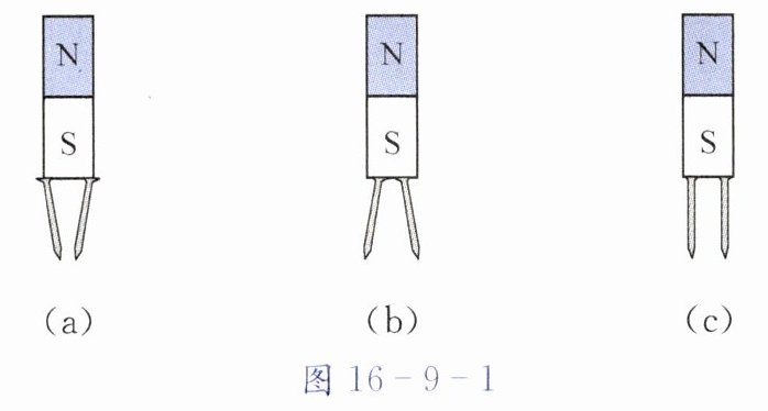 1. 如图 16-9-1 所示,磁铁吸住两根铁钉的一端,那么这两根铁钉的另一端将