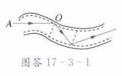(2)如图17-3-3是一段光纤放大后的图,AO是一束携带信息的激光信号,请画出激光通信信号传播的大致光路。