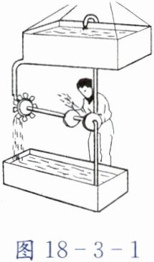 10. 如图 18-3-1 所示为一种人们设想中的永动机,它通过高处的水流冲击叶片,叶片的转动又带动抽水机从低处将水抽到高处,从而循环工作,这种永动机