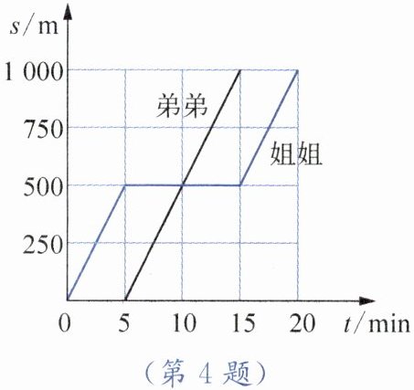 B. 姐姐总时间$t_{姐}=20\ min$,路程$s=1000\ m$,平均速度$v_{姐平}=\frac{1000}{20}=50\ m/min$;弟弟总时间$t_{弟}=15 - 5=10\ min$,平均速度$v_{弟平}=\frac{1000}{10}=100\ m/min$,两者平均速度不同,B错误。