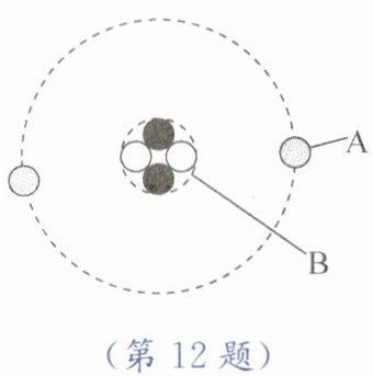 12. 如图所示是氦的原子模型示意图,原子核是