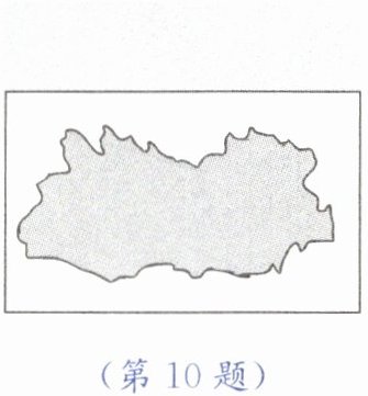 10. 如图所示为某行政区划图,小明想知道地图上该区域的面积,聪明的他先测出整张地图的面积为$S$,然后将地图折起来放在天平上,测出整张地图的质量为$m$;展开地图,其质量