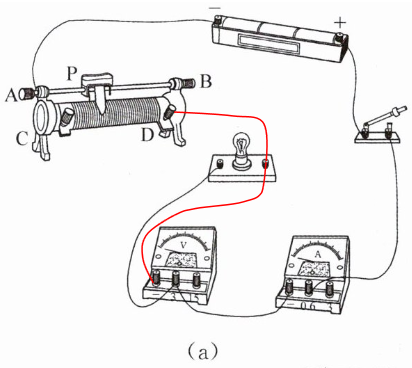 答案:(1) 灯泡额定电压为$2.5\ V$,电压表选$0 - 3\ V$量程与灯泡并联,滑动变阻器按一上一下原则串联在电路中,如下图: