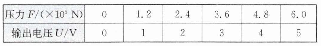 26. 小明想设计一个监测汽车超载的报警装置。查阅相关资料得知,可以用力敏电阻制作压力传感器。压力传感器受到的压力越大,它所输出的电压就越高,两者关系如下表所示。