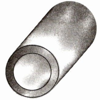 俯视图:一个同心圆(两个同心圆,表示圆柱的上下底面)。