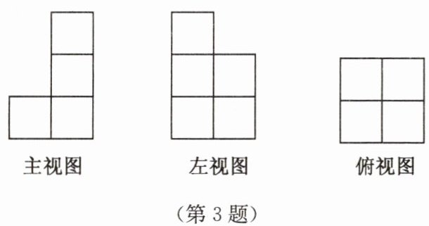3. 小亮领来n盒粉笔,整齐地摆在讲桌上,其三视图如图所示,则n的值是(