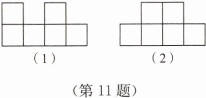 11. 桌面上有一个由若干个小正方体摆放出来的几何造型,从左面看如图(1),从正面看如图(2),则桌面上的小正方体的个数最少和最多分别为