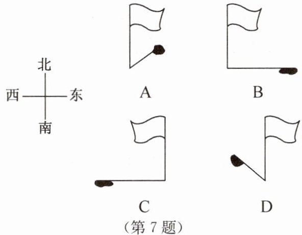 7. 下面是在一天中四个不同的时刻学校操场上旗杆的影子: