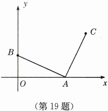 19. (8 分)如图,在平面直角坐标系中,$ A(2,0) $,$ B(0,1) $,$ AC $ 由 $ AB $ 绕点 $ A $ 顺时针旋转 $ 90° $ 而得,求点 $ C $ 的坐标及 $ AC $ 所在直线的解析式。