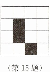 15. 如图是 $ 4 × 4 $ 正方形网格,其中已有 3 个小方格涂成了黑色。现在要从其余 13 个白色小方格中选出一个也涂成黑色,使整个涂成黑色的图形成为轴对称图形,这样的白色小方格有