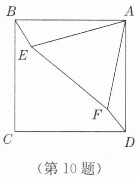 10. 如图,正方形$ABCD$与正三角形$AEF$的顶点$A$重合,将$△ AEF$绕顶点$A$旋转,在旋转过程中,当$BE = DF$时,$∠ BAE$的度数是