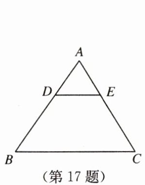 17. 如图,$D$,$E$ 分别是$△ ABC$ 边 $AB$,$AC$ 上的点,$DE// BC$,$AD:DB = 2:3$,则三角形 $ADE$ 的面积与四边形 $DECB$ 的面积之比是