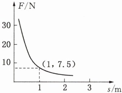 (2)根据$W = Fs$,且$W$为定值$7.5J$,可以得到$F$与$s$之间的函数关系为: