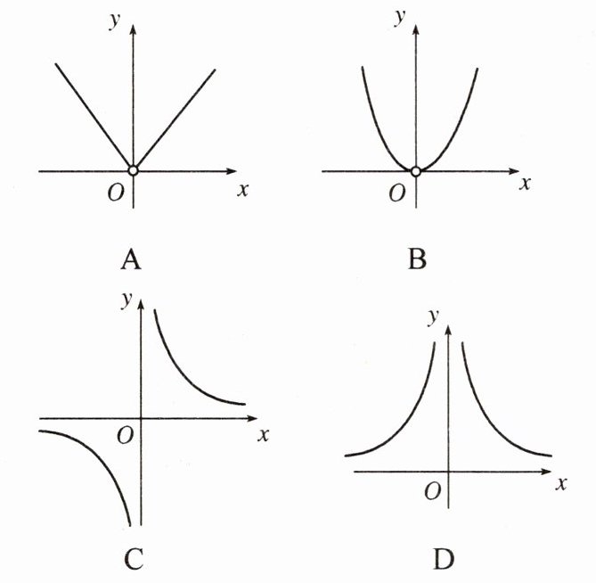 8. 定义新运算:$ p \oplus q = \begin{cases}\frac{p}{q} & (q > 0) \\ -\frac{p}{q} & (q < 0)\end{cases}$,例如,$ 3 \oplus 5 = \frac{3}{5} $,$ 3 \oplus (-5) = \frac{3}{5} $,则 $ y = 2 \oplus x(x ≠ 0) $ 的图象是( )