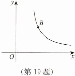 19. (7 分)如图,在平面直角坐标系 $ xOy $ 中,点 $ B $ 是反比例函数 $ y = \frac{k}{x}(k > 0,x > 0) $ 图象上一点。