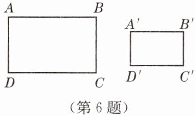 6. 如图,在矩形$ABCD$与矩形$A'B'C'D'$中,$AB = 16$,$AD = 10$,$A'D' = 6$,矩形$A'B'C'D'$的面积为$57.6$,那么这两个矩形相似吗?为什么?