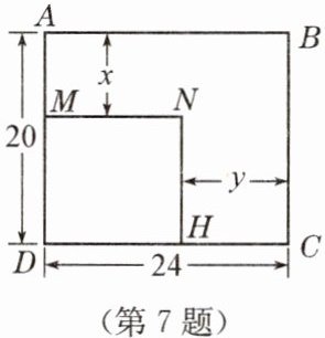 7. 如图,矩形$ABCD$的长为$24$,宽为$20$。在矩形$ABCD$内剪去矩形$DMNH$($H$在$DC$上)。要使剪去的矩形与原矩形相似,求$y$与$x$之间的函数解析式。