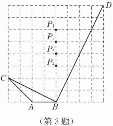 3. 如图,在正方形网格上,若使 $△ ABC$ 与 $△ PBD$ 相似,则点 $P$ 应在点(