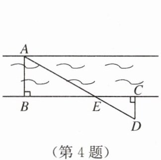 4. 如图,已知A为河对岸一点,AB⊥BC,DC⊥BC,垂足分别为B,C,直线AD,BC相交于点E,如果测得BE=60m,CE=30m,CD=20m,则河宽AB=
