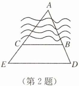 2. 如图,已知在河两岸分别有A,B两村,现测得A,B,D在一条直线上,A,C,E在一条直线上,BC//DE,DE=100m,BC=80m,BD=20m,则A,B两村间的距离为