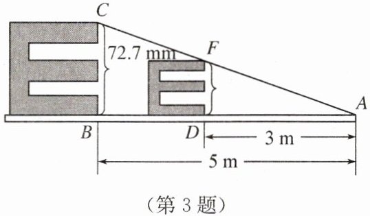 3. 如图,小明探究课本“综合与实践”板块“制作视力表”的相关内容:当测试距离为5m时,标准视力表中最大的“E”字高度为72.7mm,当测试距离为3m时,最大的“E”字高度为